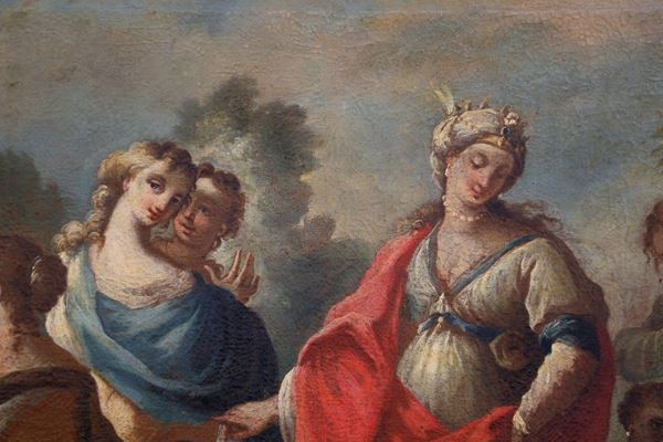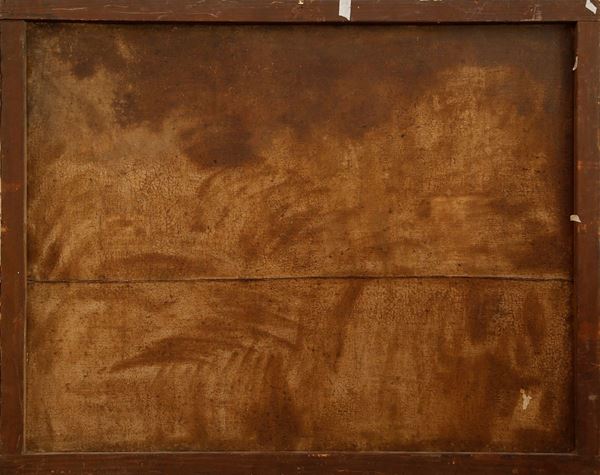 The painting, on the first canvas, shows a horizontal junction seam on the reverse, also visible on the front with a more marked crimp. Small gaps can be seen along the outer edges of the painting. On the four sides the beating mark of the frame can be seen.