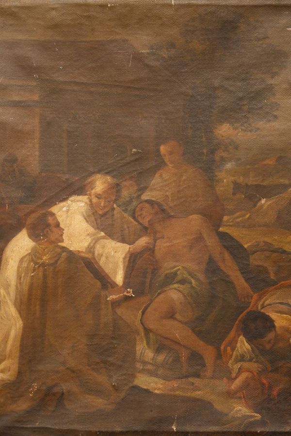Lombard painter of the eighteenth century - Cluniac monk gives extreme unction, XVIII century