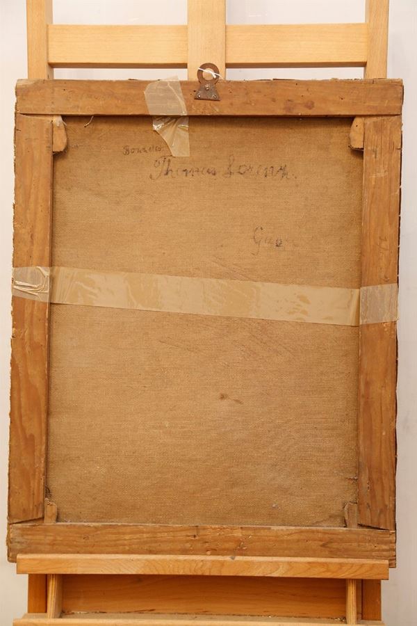 The painting, probably a sketch made in the eighteenth century, is on the first canvas and shows no obvious repainting. The pictorial material is impoverished and gaps, tears and lacks of color are visible.