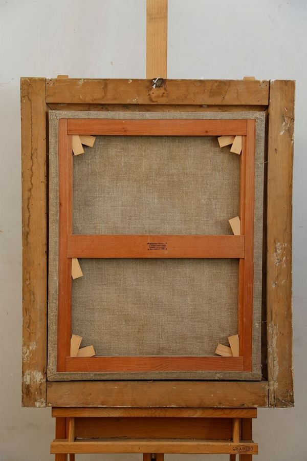 Within a coeval gilded frame. Relined work, wear on the gilding of the frame.