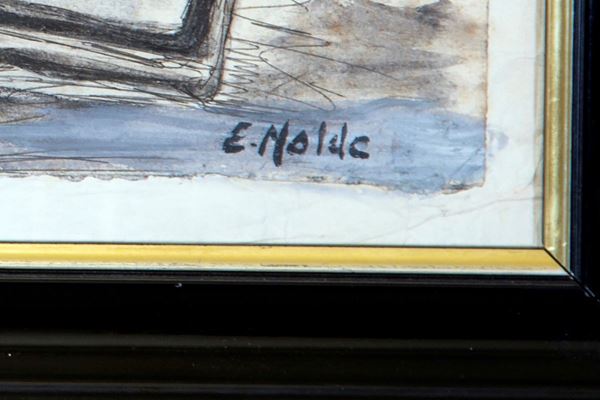 The framed drawing bearing the signature E. Nolde in the lower right corner is in good condition.