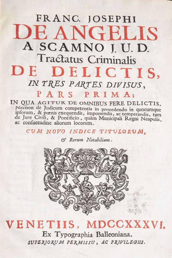 Former Typographia Balleoniana. In soft parchment. Without shortcomings or tears. Foxing and small spots of widespread humidity.