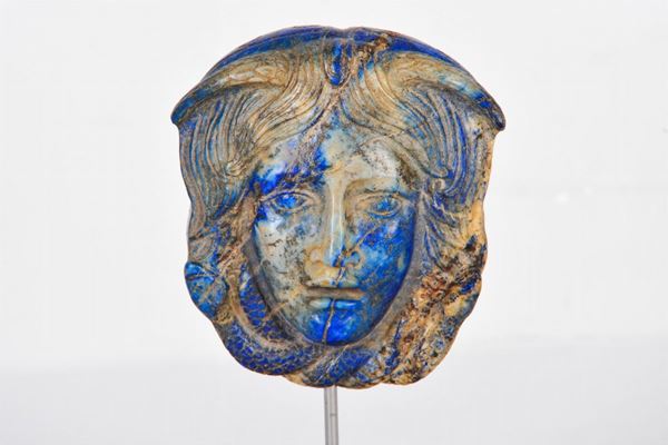 Sculpture in Lapis Lazuli, on a non-contemporary base in yellow marble from Siena and black marble from Belgium.