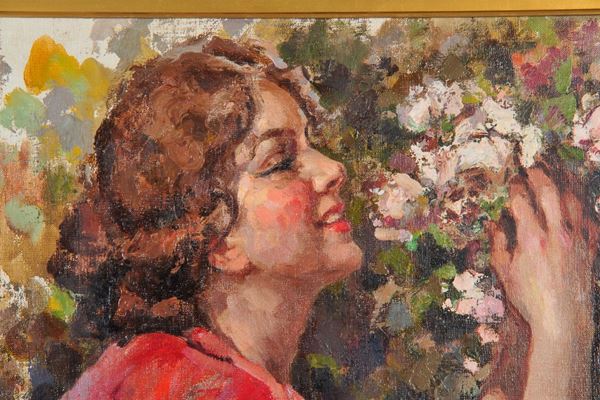Half-length portrait of a girl with flowers, Italy, first half of the 20th century