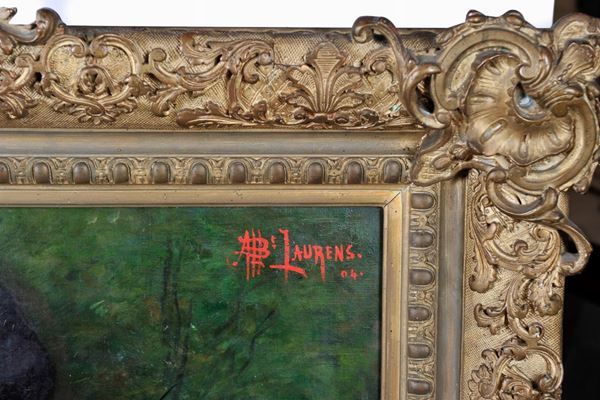 with coeval frame in wood and gilded stucco. First canvas, signed and dated upper right.