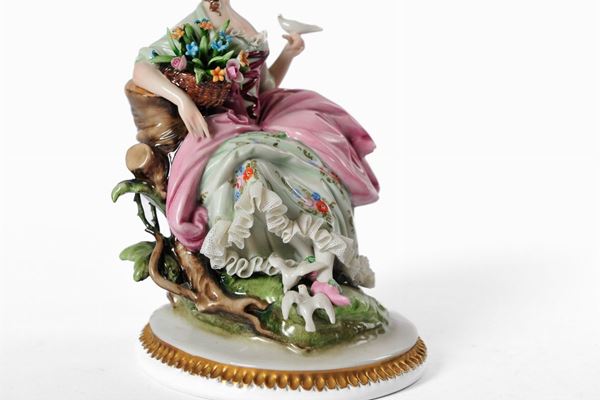 Volume sculpture in polychrome porcelain in white, green, purple, blue and beige shades. Finishes in pure gold. Cappรจ signed at the base with a crowned N in blue underglaze.