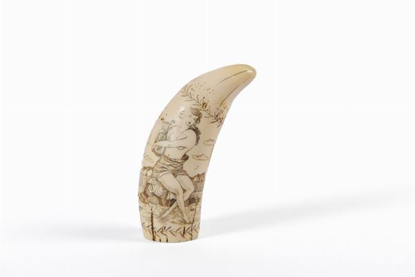 Engraved on both sides with a female figure and a three-masted sailing ship.