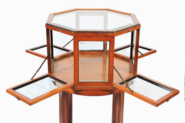 Octagonal in shape, with 4 plinth legs connected to the base, rotating upper surface, with ground crystals.