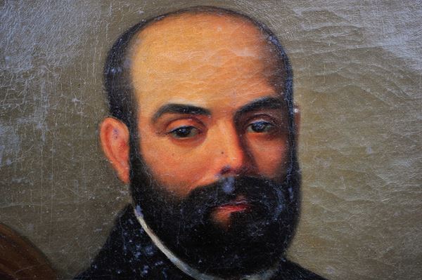 Within a coeval gilded wood frame. On the first canvas, with small restoration interventions of the pictorial material.