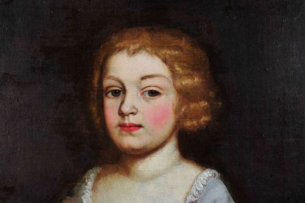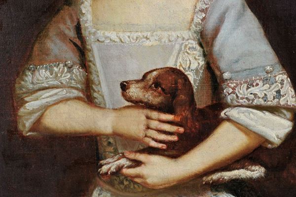 17th century Italian painter - Portrait of a girl with a dog, 17th century