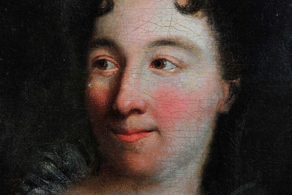 Within a non-coeval frame in gilded wood. The painting shows evident craquelure in correspondence with the woman's face. The work is relined and bears the inventory number "35" on the back of the frame.