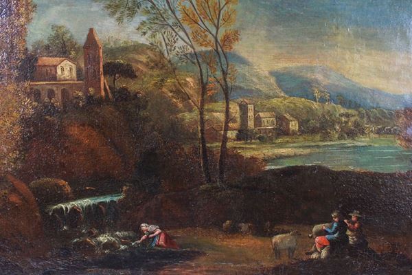 River Landscape with Figures, 20th century