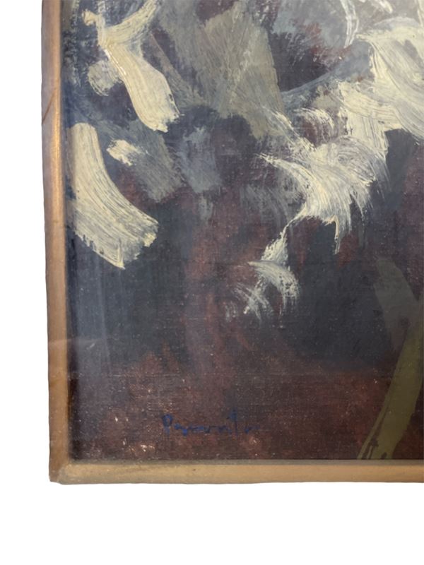 Firmato in basso a sinistra. Al retro iscrizioni e timbri di gallerie d'arte.