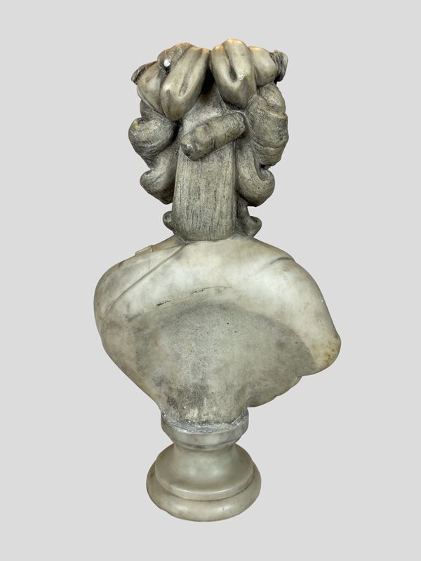 Scultura in volume, busto della regina Maria Antonietta in marmo statuario, su base circolare. Scultura d'accademia. Punta del naso restaurata.