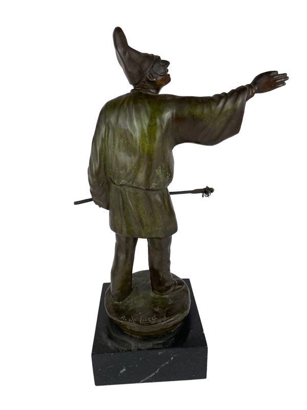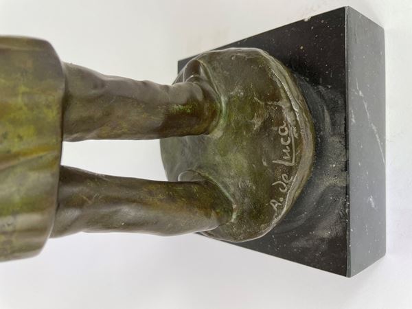 Scultura in volume in bronzo su base in marmo nero. Firmata al retro A. De Luca.