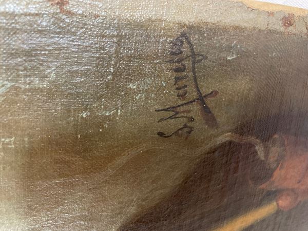 olio su tela applicata su tavola, con cornice, firmato sulla destra