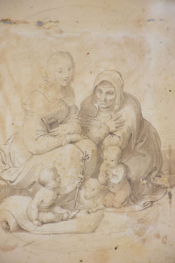 Il disegno parrebbe essere uno studio (o il prototipo?) di un'incisione ideata da Minardi e incisa da Giovanni Wenzel (1791 - 1880). Strappi e lacerazioni.