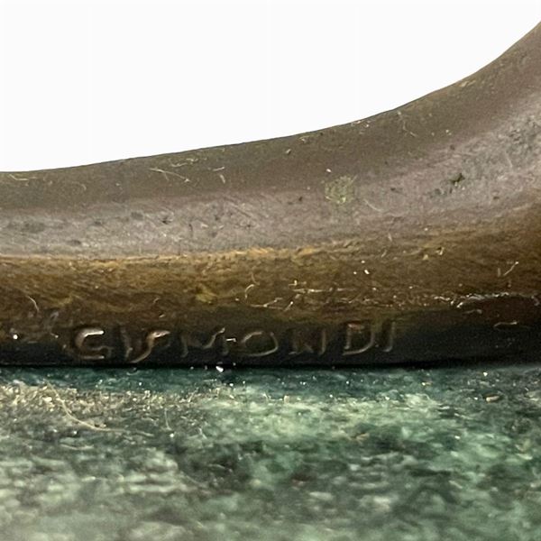 Scultura in bronzo brunito, firmata "Gismondi" sulla coda.