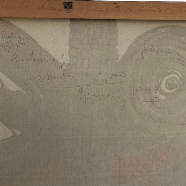 Firmato e datato in alto a destra: bertina (83). Firmato, dedicato e datato al retro. Scritte sul telaio.
