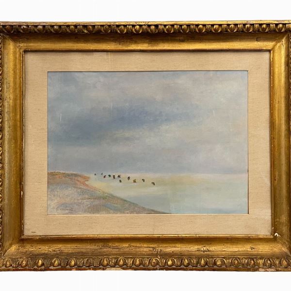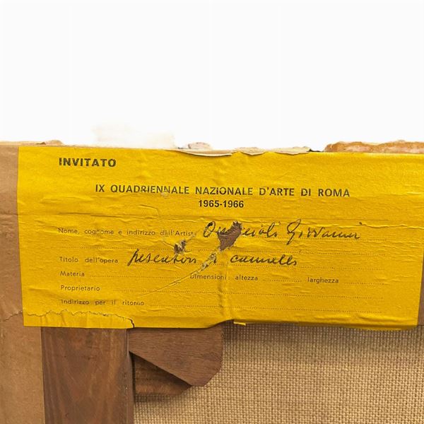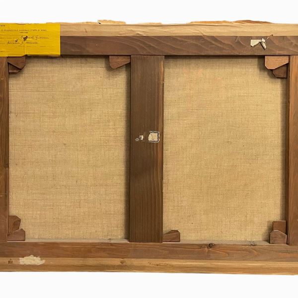 Firmato in basso a sinistra: G. Omiccioli. Targhetta al retro attestante l'esposizione del dipinto alla IV Quadriennale Nazionale d'Arte di Roma 1965 - 1966.