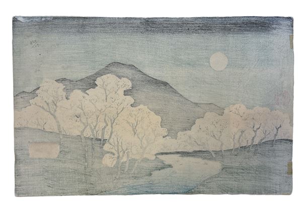 dalla serie: Le otto vedute del fiume Sumida"- Piccola lacuna in basso a destra. Timbri a sinistra. Incollata su due punti a passe - partout moderno.