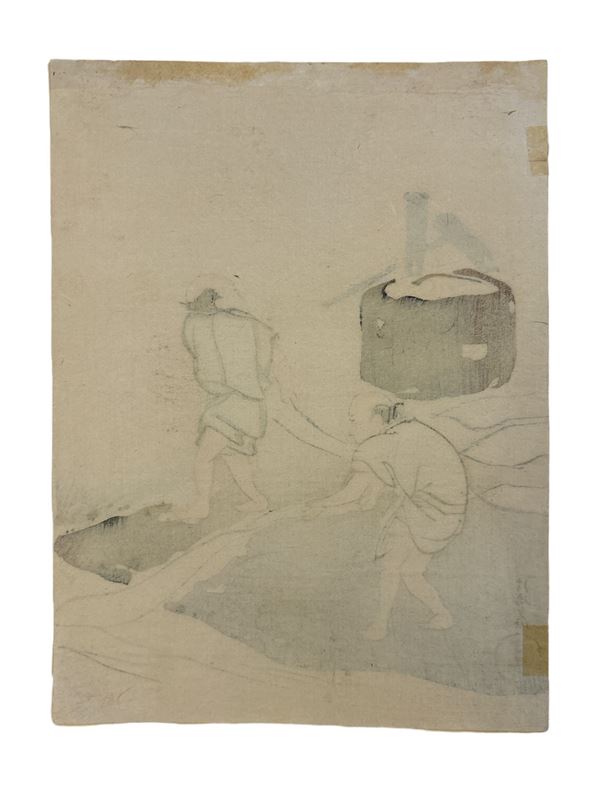 Rifilata. Incollata su due punti al margine sinistro a passe-partout moderno.