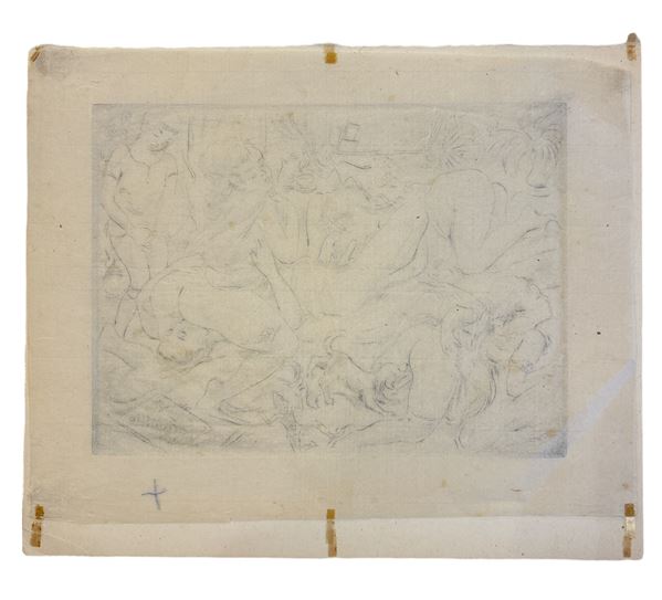 Attaccato in 6 punti a passe-partout moderno. Segni di adesivo.