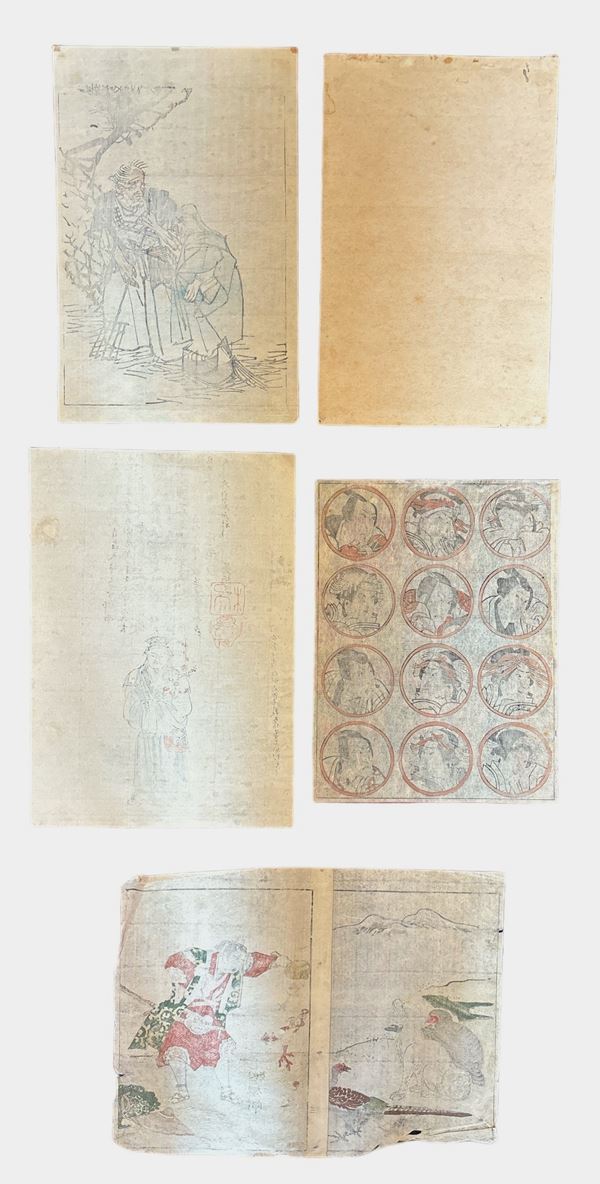 Lotto di 5 fogli giapponesi, Giappone, XIX secolo