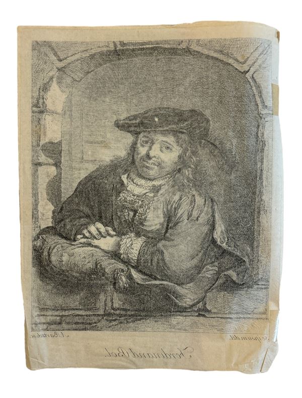 Iscrizioni: se ipsum del. Ferdinand Bol. A. Bartsch sc. Rifilata alla linea di battitura (visibile). Incollata in due punti di lato a passe - partout moderno. Segni di adesivo in due piccoli punti laterali. Traccia di sgualciture nella parte inferiore.