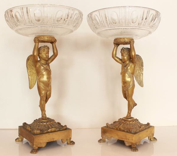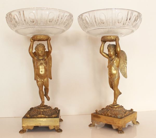 Coppia di centrotavola con amorini, prima metΓ del XIX secolo