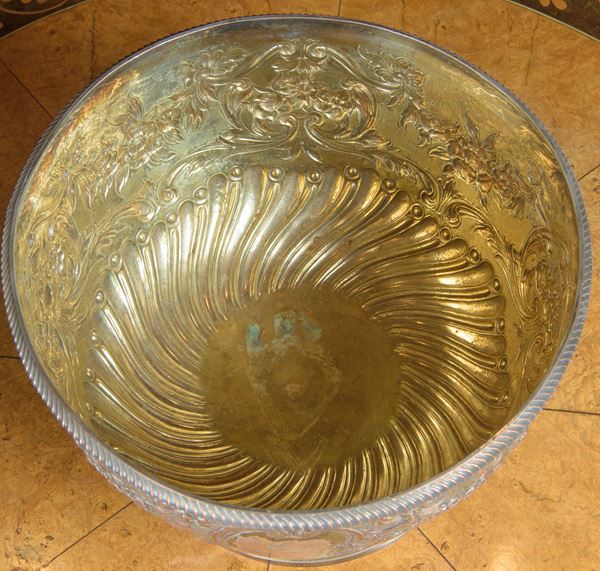 martellato e sbalzato a decorazioni floreali e vegetali.