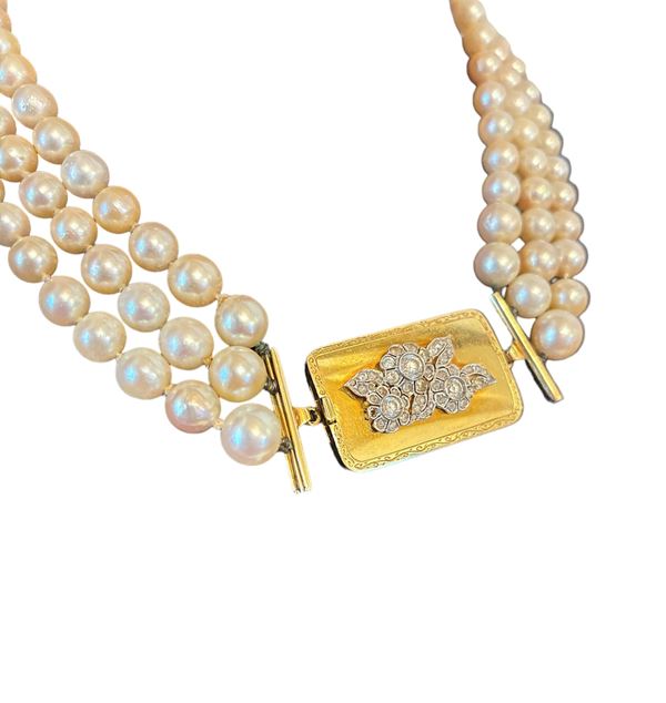 con fermaglio in oro 18kt e brillanti peso totale 81 gr