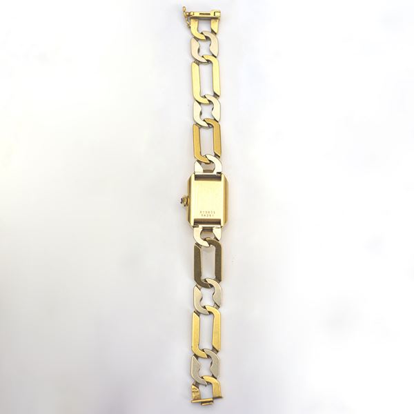 Orologio da polso in oro 18kt con bracciale a catena, vetro danneggiato e meccanica da revisionare. Peso lordo gr 46