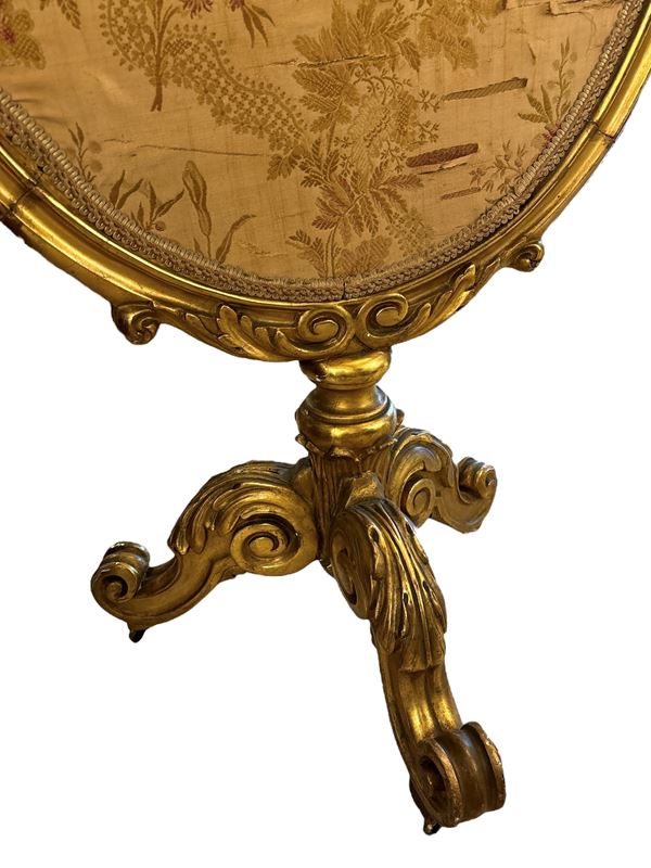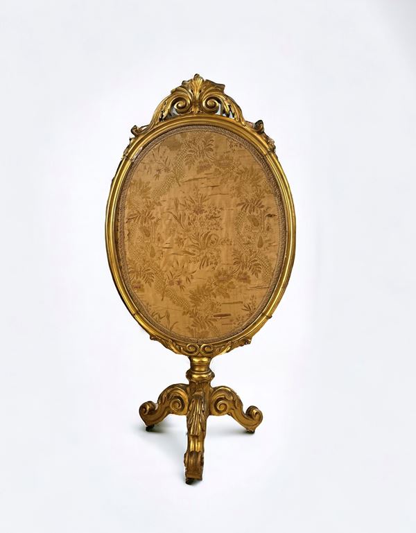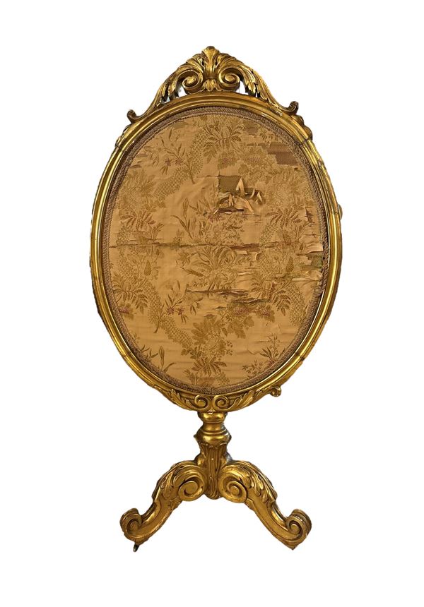 in legno dorato ed intagliato. Corpo centrale di forma ovale con basamento a tripode. Manifattura francese, periodo Luigi Filippo