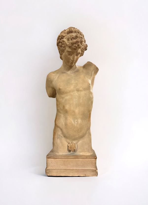 in terracotta, raffigurante torso di Antinoo. Reca firma G. Padovelli Roma