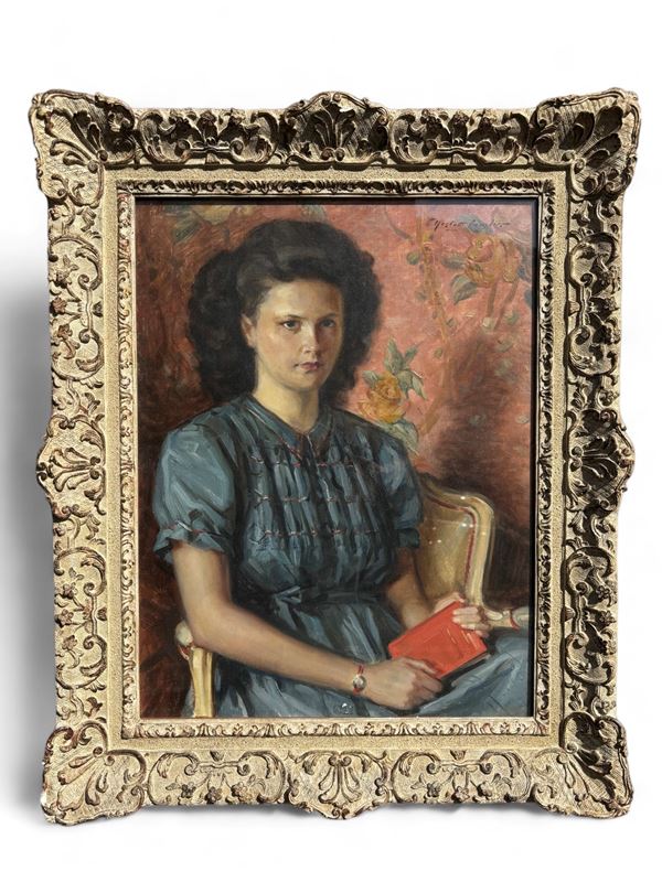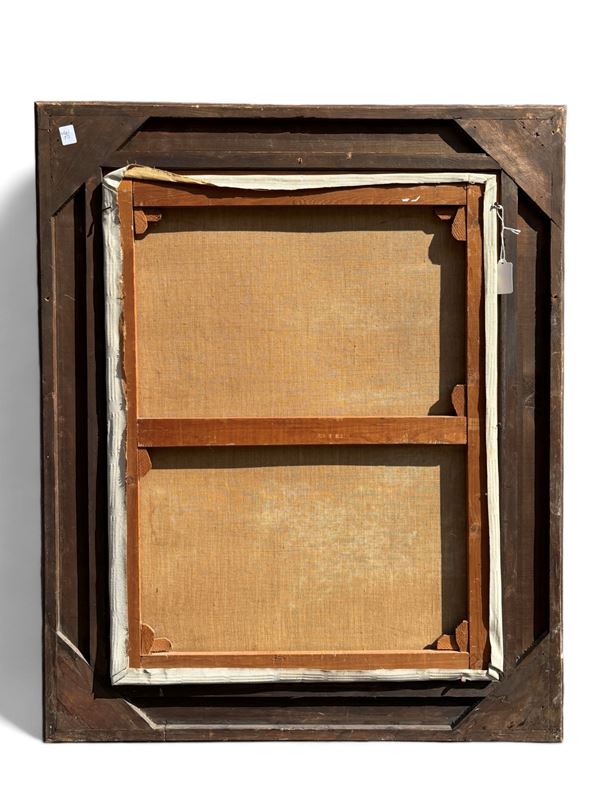 Firmato in alto a destra. Entro cornice in legno intagliato coeva.
