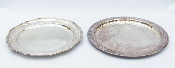 Due vassoi in argento 800 Peso totale 1550 gr., Manifattura italiana, XX secolo