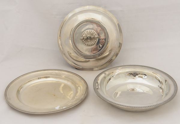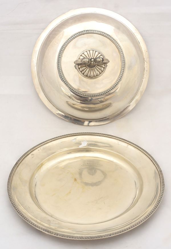 Legumiera con piatto in argento 800, Manifattura italiana, XX secolo