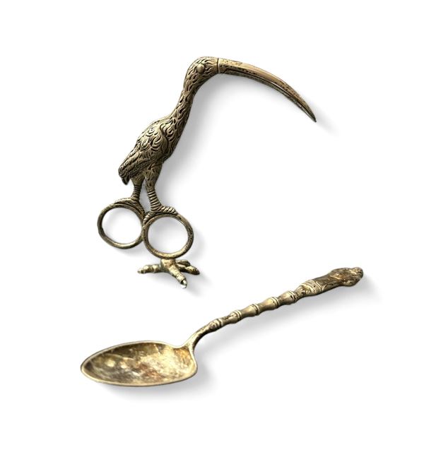 Pinza per pannolini o taglia cordone ombelicale e cucchiaino da svezzamento, fine XIX secolo