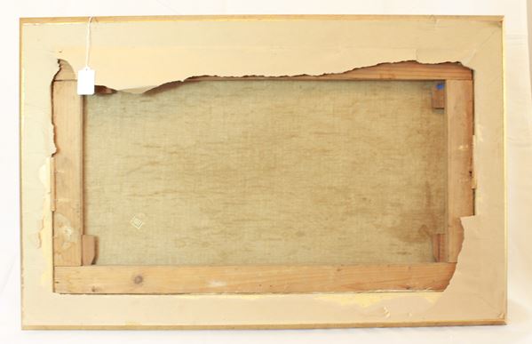 Firmato in basso a destra. Mancanze sul lato destro del dipinto.