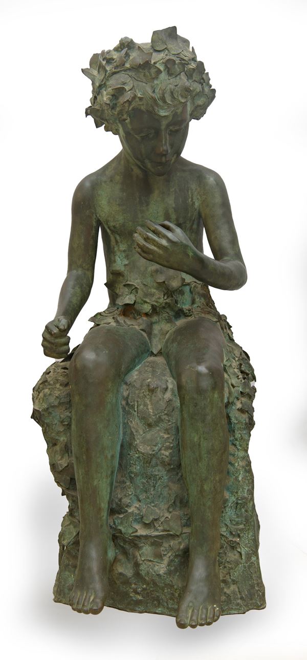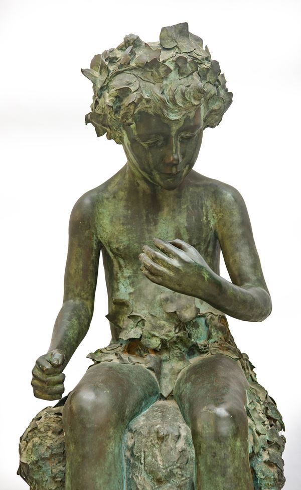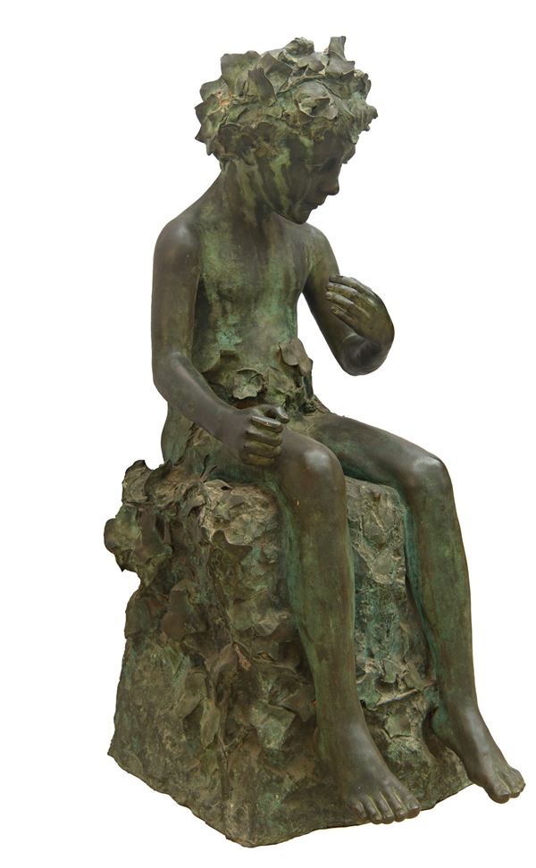 in bronzo a patina verde, raffigurante Satirello seduto.