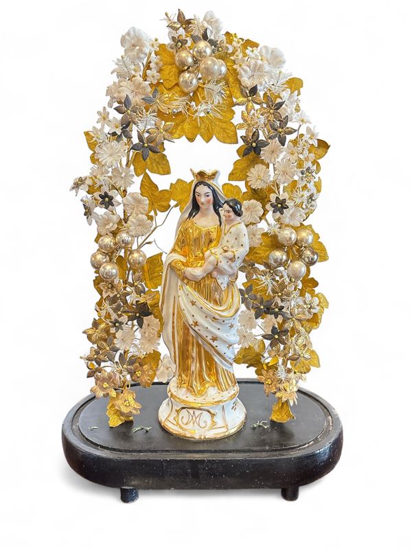 27 cm altezza Madonna con bambino; 16cm altezza Vasi