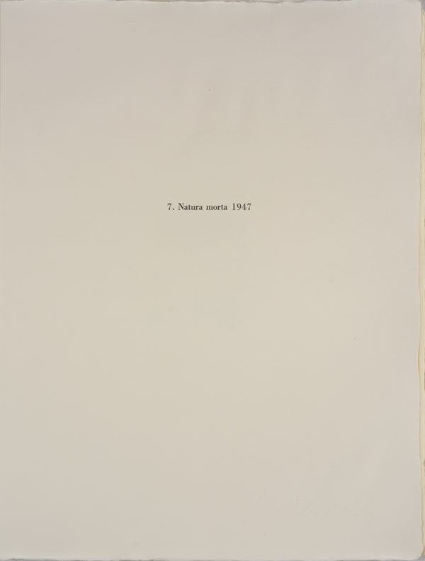 Tratta dall'edizione n. 13/120 (presente sul colophon). Firmato in lastra. L'opera Γ¨ stampata in fotolitografia su carta di cotone fatta a mano molto spessa (con velina protettiva originale), progettata e prodotta appositamente per questa edizione dalla cartiera Miliani di Fabriano. Il foglio Γ¨ raccolto in un'altra cartella di carta di cotone fatta a mano leggermente piΓΉ sottile, recante la firma dell'artista "Morandi" in filigrana, realizzata appositamente dalla cartiera Enrico Magnani di Pescia.
