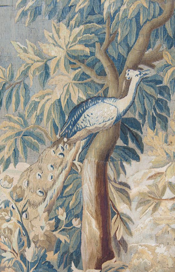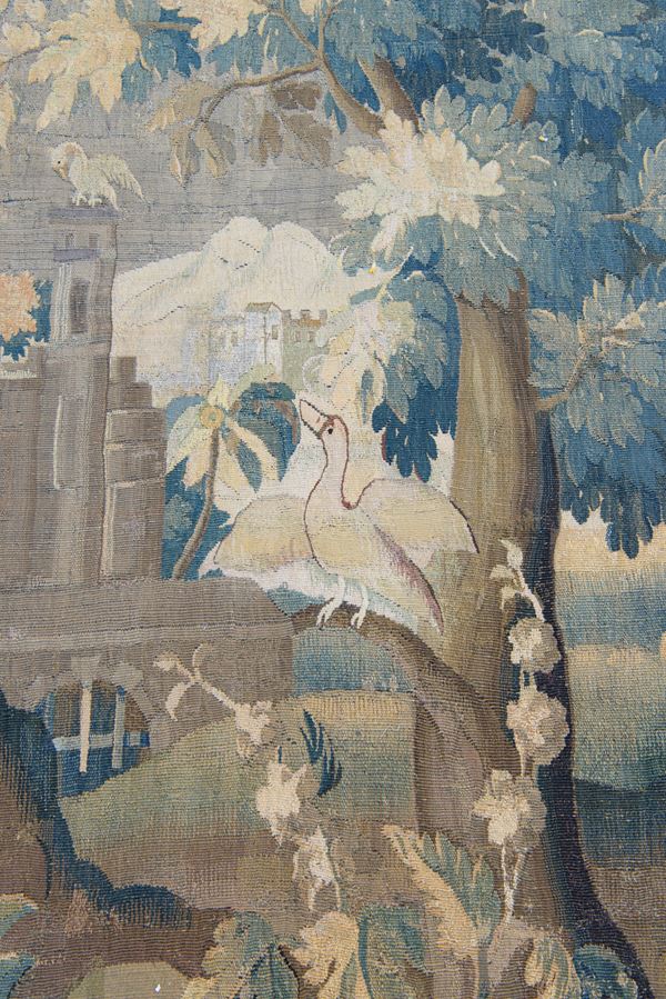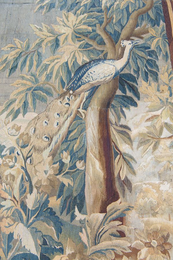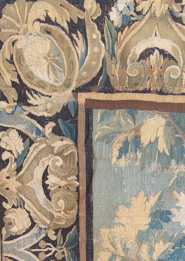 in lana, Verdure. Con elementi arborei, fogliame e volatili su sfondo di paesaggio. Entro bordura a motivi floreali. Restauri e mancanze