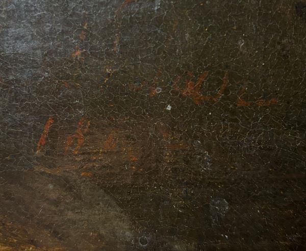 Questo periodo è definito da elaborati giochi di luce, un sapiente uso del colore sui toni caldi e la capacità di cogliere il lato poetico dell'episodio che riesce a conferire ai paesaggi un gran vigore. Firmato e datato indistintamente in basso a sinistra. In cornice.