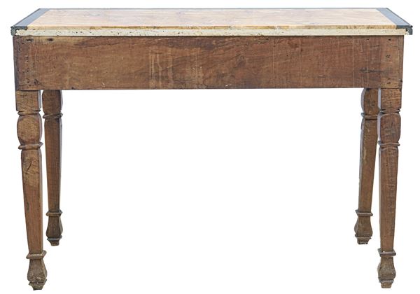 a quattro piedi in legno di ciliegio intagliato, con piano superiore in marmo giallo di Siena e fascia laterale Verde Alpi