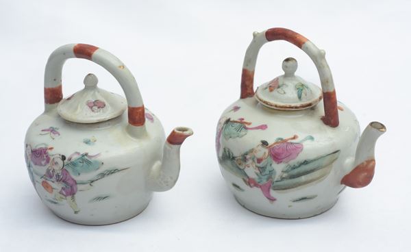 Con decorazioni raffiguranti scene di genere. Dinastia Qing. Marchiate alla base. Manifattura cinese.