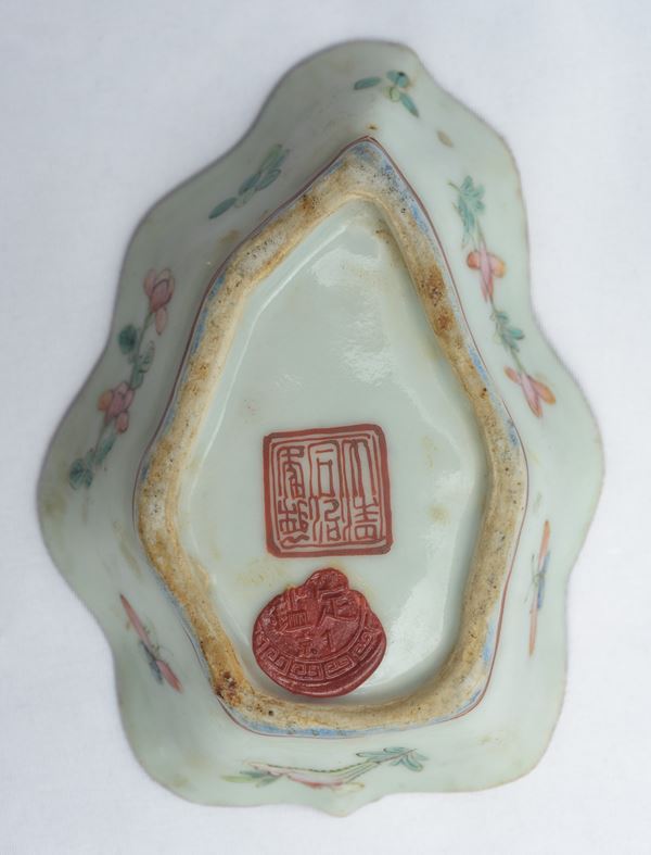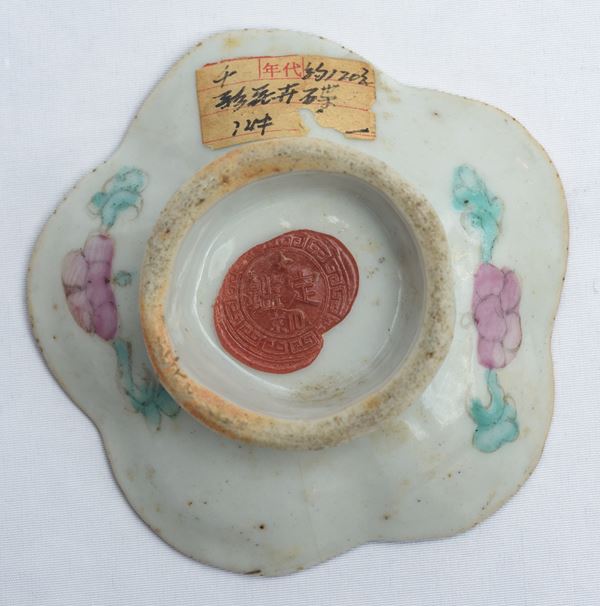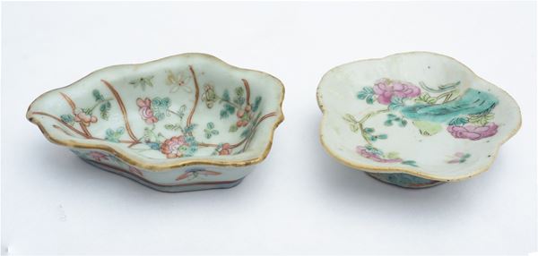 Decorazioni floreali. Una delle due presenta marchio alla base (9 x 7 cm). Dinastia Qing. Manifattura cinese.