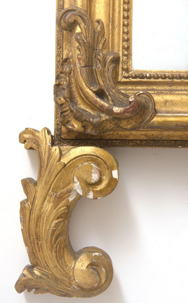 in legno dorato ed intagliato, con decori a motivi floreali. Periodo Luigi Filippo. Restauri e mancanze.