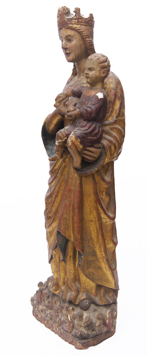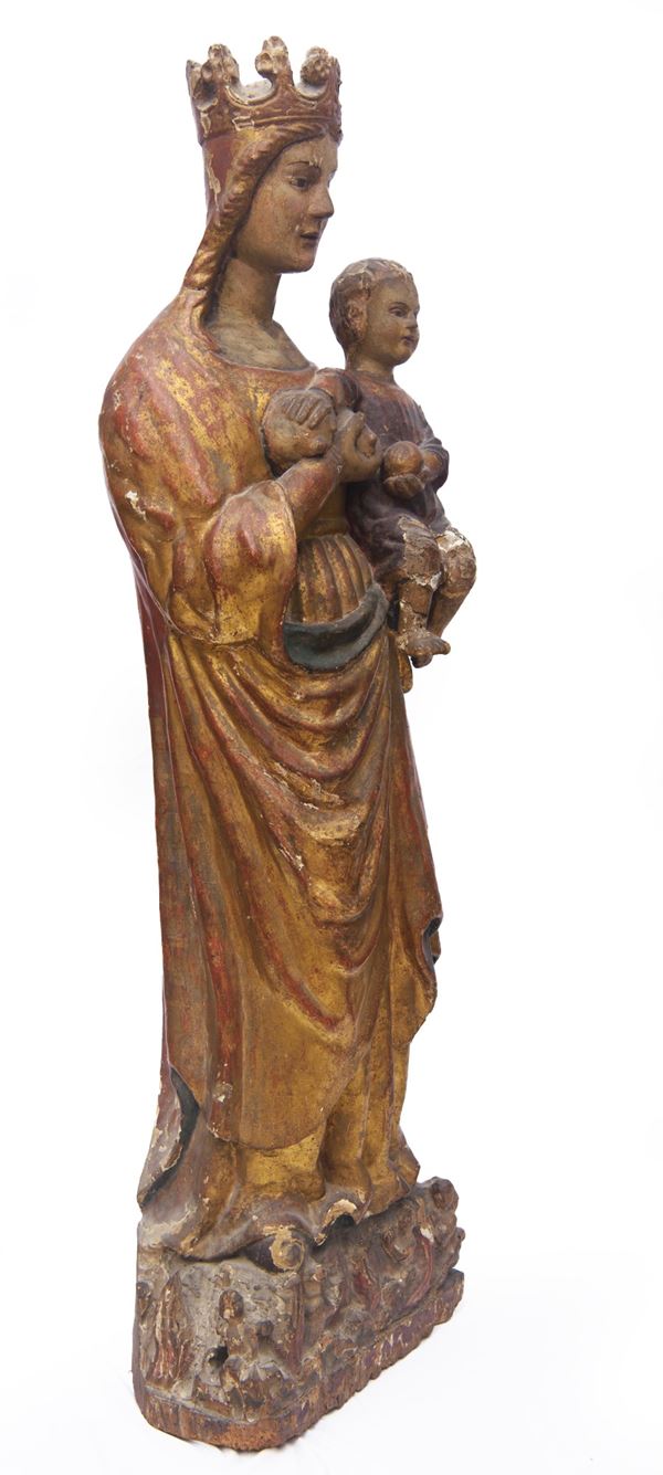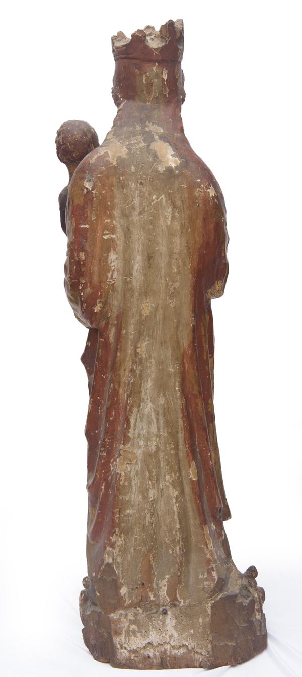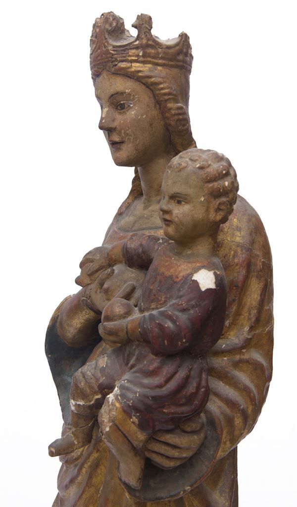 La scultura, originariamente dorata nella quasi totalità, scopre in molti punti il bolo rosso della preparazione e la tela preparatoria applicata sul legno. Mancanze e restauri (gli occhi di entrambe i volti non presentano ridipinture).
